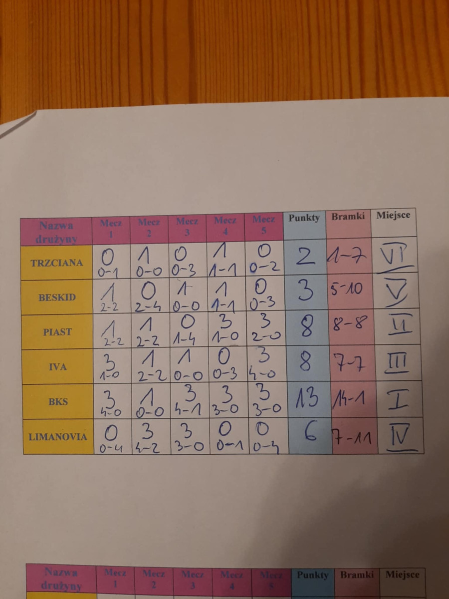 W sumie rozegrano 15 meczy. Zawody na boisku sędziował sędzia piłkarski PPN Limanowa Wroński Mateusz.