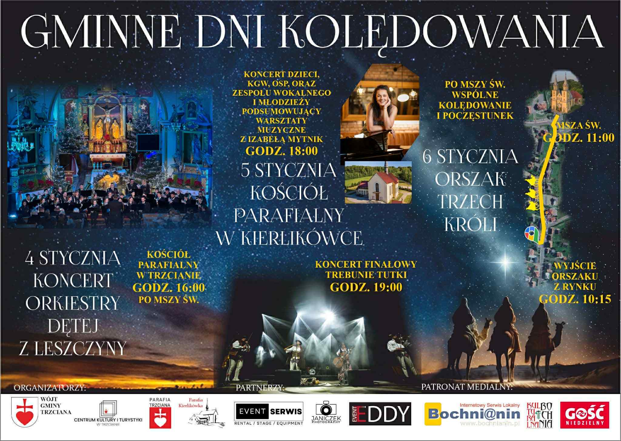 Już dziś zapraszamy na Orszak Trzech Króli do Trzciany, koncert kolęd zespołu Trebunie Tutki w Kierlikówce a także koncert Orkiestry Dętej w Trzcianie.