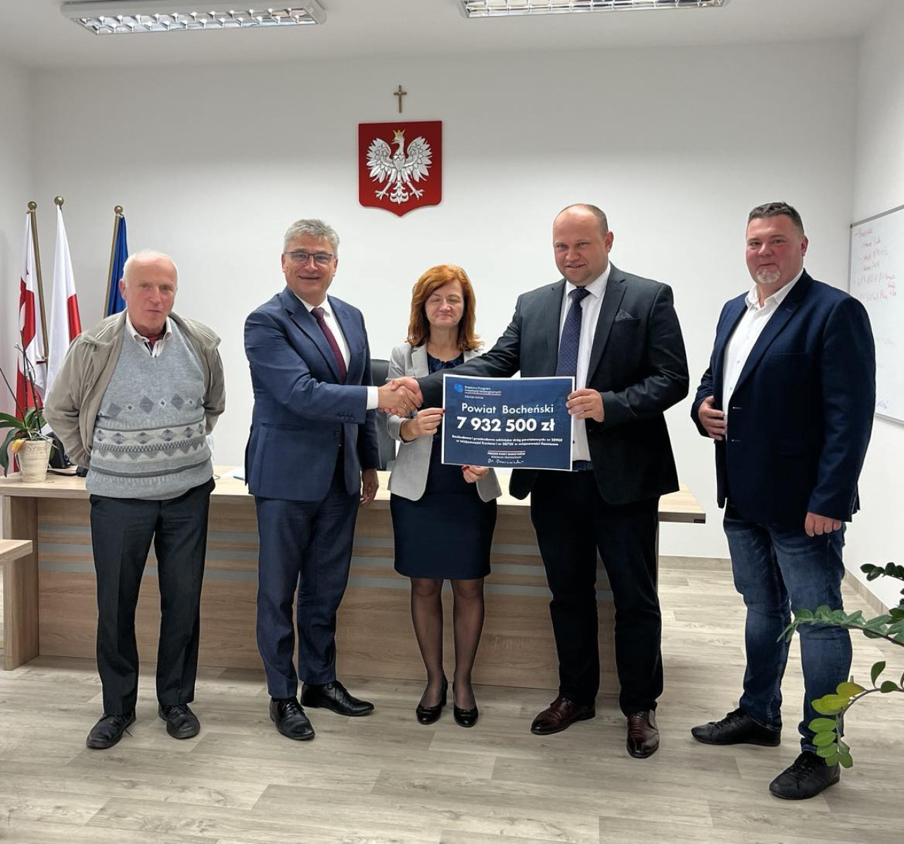 Przekazany czek Wójt Gminy Trzciana przekaże na ręce Pana Starosty.