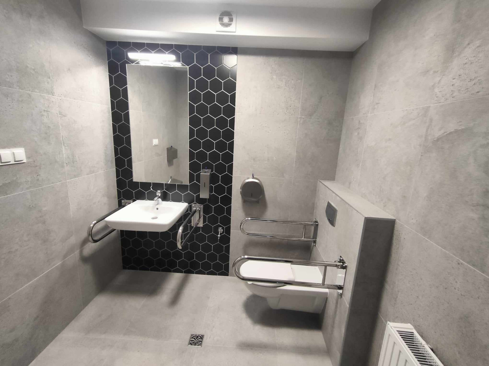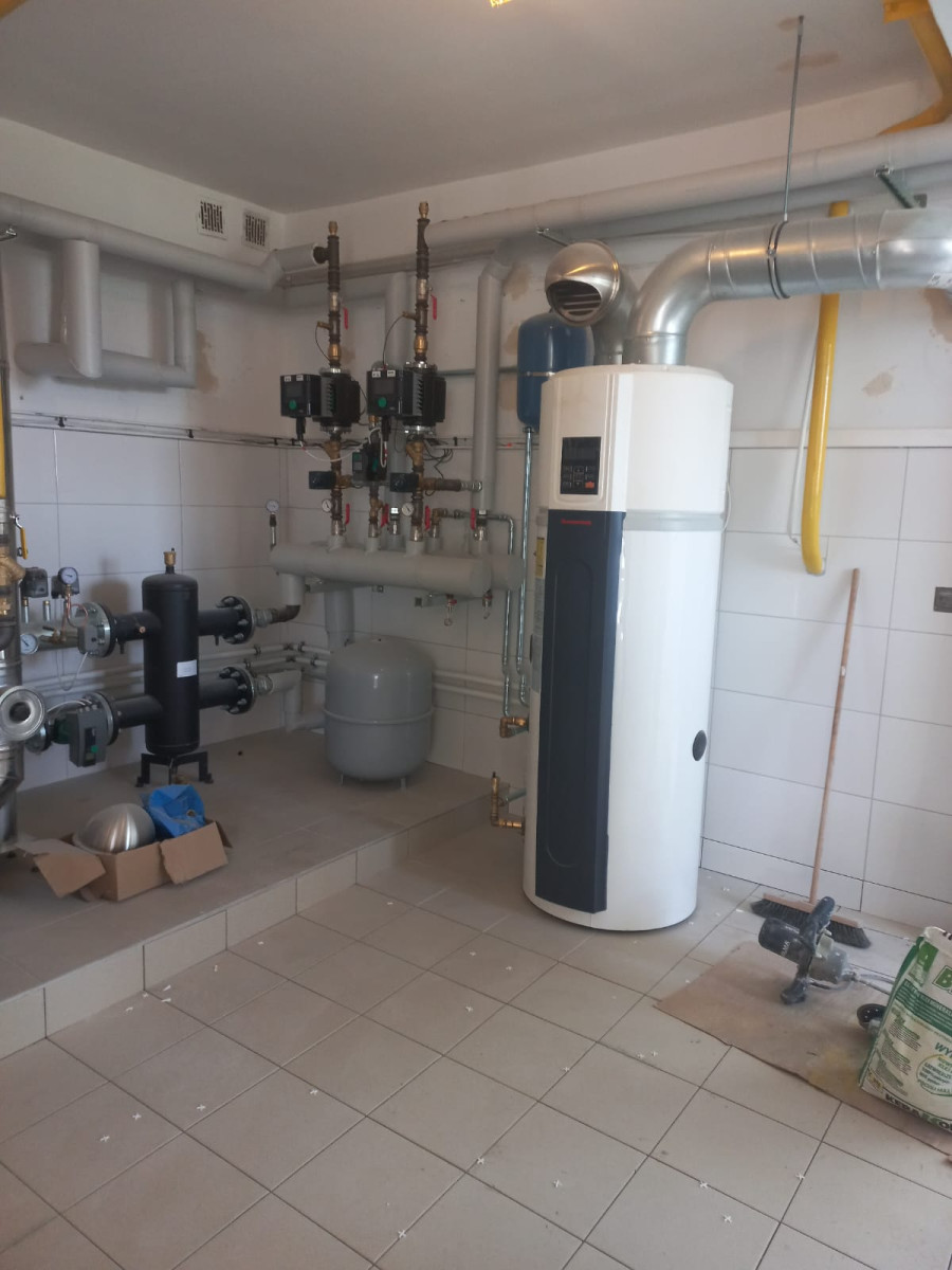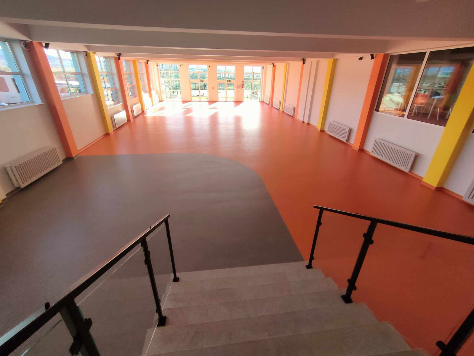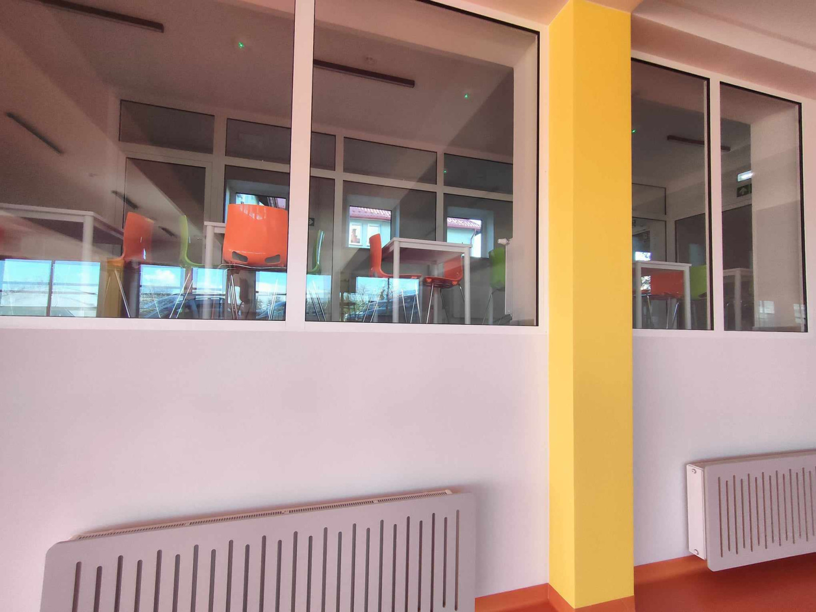 Zakończona realizacja inwestycji polegała na: – likwidacji niecki basenowej poprzez zasyp wraz wykonaniem warstw posadzkowych; – wyburzenie części istniejących elementów niecki; – wyburzenie istniejących schodów w części basenowej wraz z wykonaniem nowych jednobiegowych żelbetowych; – wykonaniu nowych otworów drzwiowych wraz ze wzmocnieniem nadproży; – domurowanie fragmentów ścian, wykonaniu ścianek działowych dla poprawy funkcji; – wymianie istniejącej stolarki PCV zewnętrznej w elewacji południowej; – przebudowie pomieszczenia widowni na pomieszczenie bufetu i magazynu; – wydzieleniu ścianką konstrukcji systemowej obłożonej płytą GKF ( SDI-2x12,5GKF DF 2xcw100) o klasie odporności ogniowej REI 120 pomieszczenia holu od bufetu i stolarką aluminiowa EI60 – wykonaniu stolarki konstr. aluminiowej EI 30 oddzielającej bufet od sali zabaw – szkło bezpieczne – wykonanie instalacji elektrycznej, nisko prądowej , wod kan, co, cwu, p.poż, monitoringu, nagłośnienie, wyposażenie w czujki dymu; – oznakowaniu dróg ewakuacyjnych i oświetlane awaryjnego ewakuacyjnego. – wykończeniu ścian i posadzek – wyposażenie pomieszczeń w niezbędne akcesoria W ramach inwestycji wykonano również nowoczesną modernizację kotłowni zastępując już mocno wyeksploatowane /nieoszczędne/ kotły gazowe atmosferyczne na nowoczesny kocioł kondensacyjny ARES TEC 250 IMERGAS współpracujący z powietrzną pompą ciepła typu monoblok wraz z niezbędną armaturą. Nowoczesna i bardzo oszczędna modernizacja kotłowni służyć będzie do ogrzewania / w tym ciepłej wody użytkowej/ pomieszczeń budynku budowanej sali zabaw jak również dla ogrzewania całego budynku istniejącej szkoły PSP w Leszczynie.