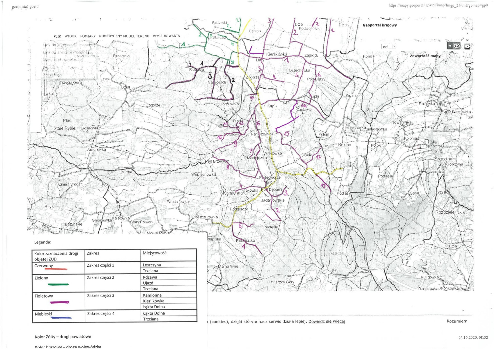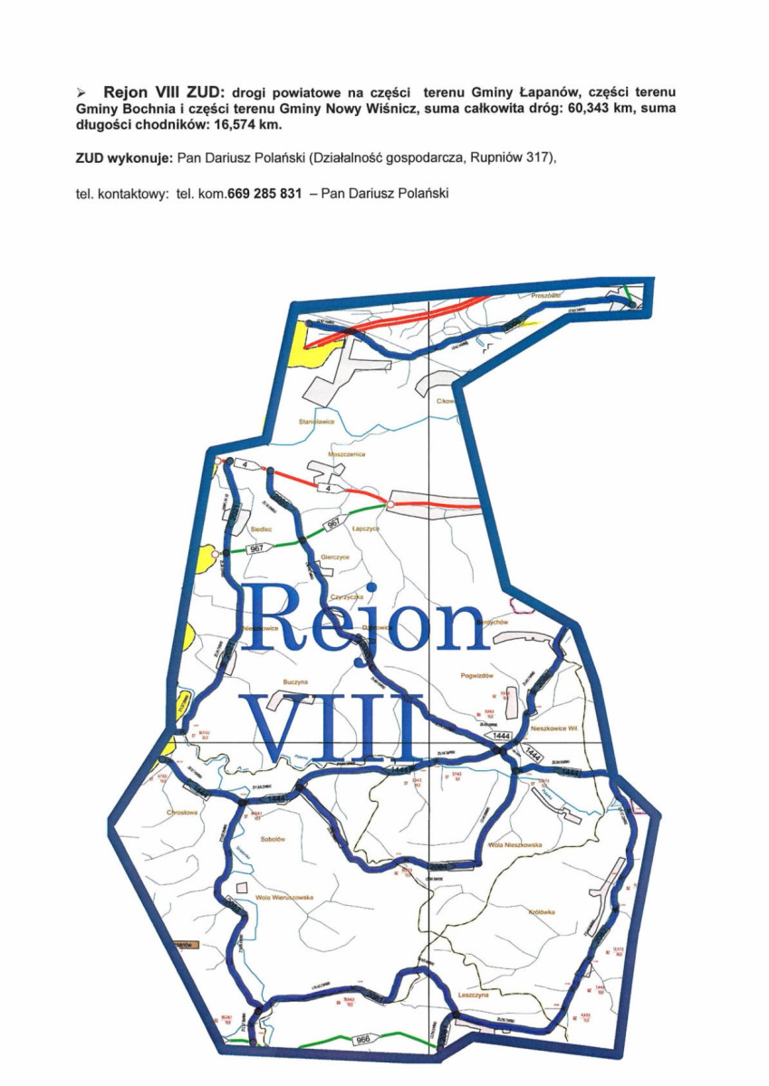2) drogi powiatowe rejon 6 kolor żółty i rejon 8 kolor niebieski