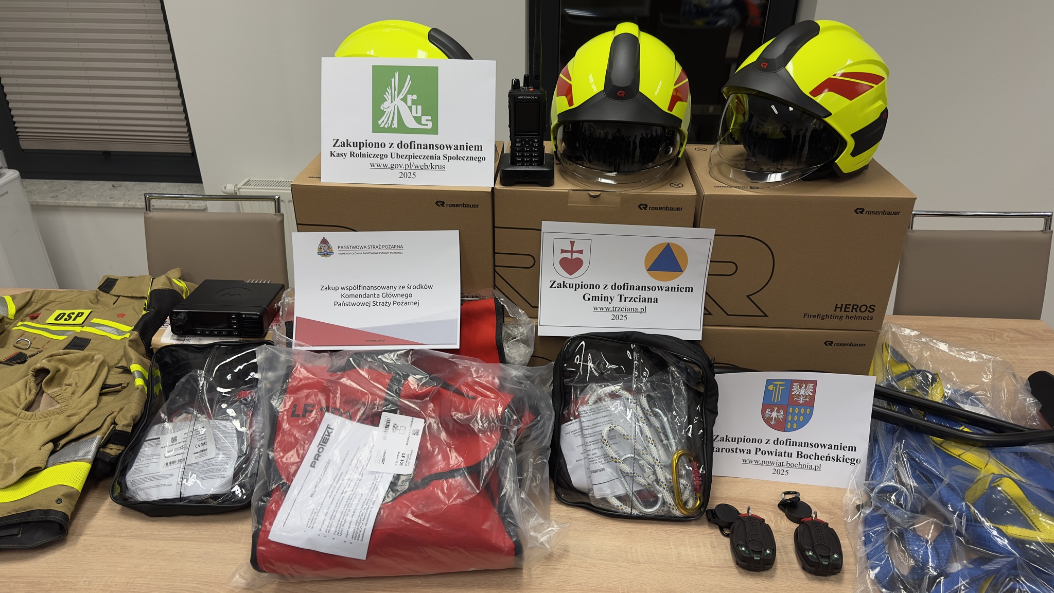 Zakupiono m.in. przewody hydrauliczne do zestawu Lucas, radiotelefon z osprzętem, hełmy, linki ratownicze, buty specjalne, zestawy asekuracyjne oraz sygnalizatory bezruchu.