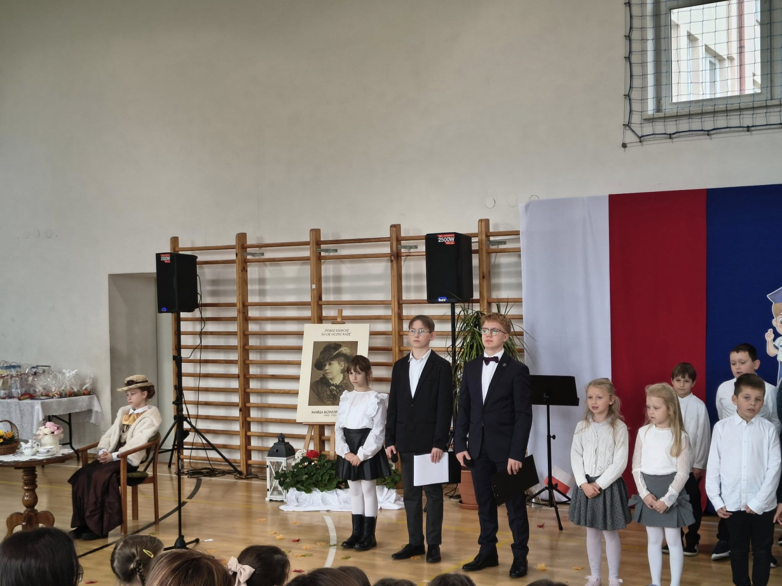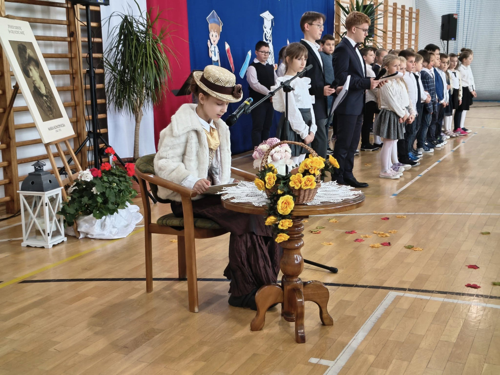 W części artystycznej wystąpiły dzieci z oddziału przedszkolnego oraz uczniowie starszych klas. Widzowie mogli podziwiać recytacje wierszy Marii Konopnickiej, śpiew piosenek oraz inscenizację, podczas której na scenie pojawił się duch samej patronki szkoły.