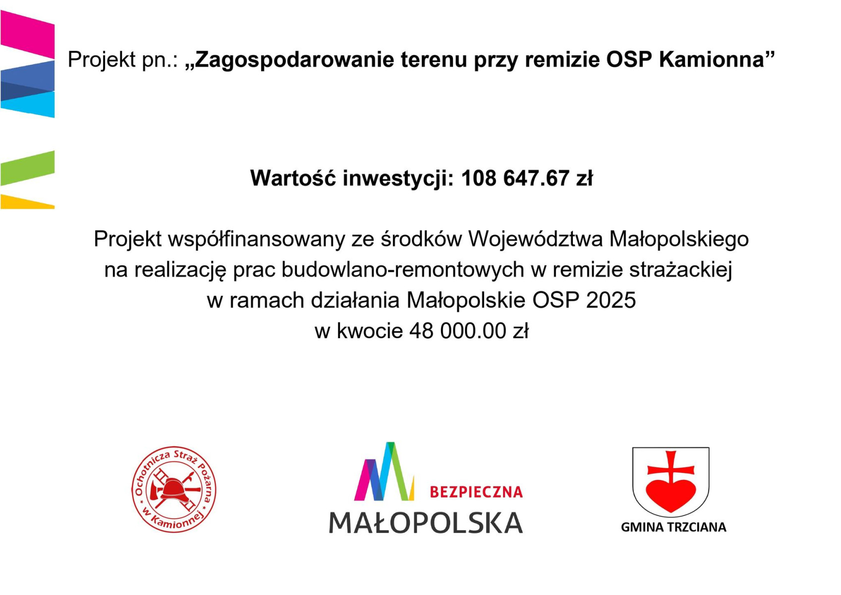 Oba zadania współfinansowane z budżetu Województwa oraz Gminy Trzciana.
