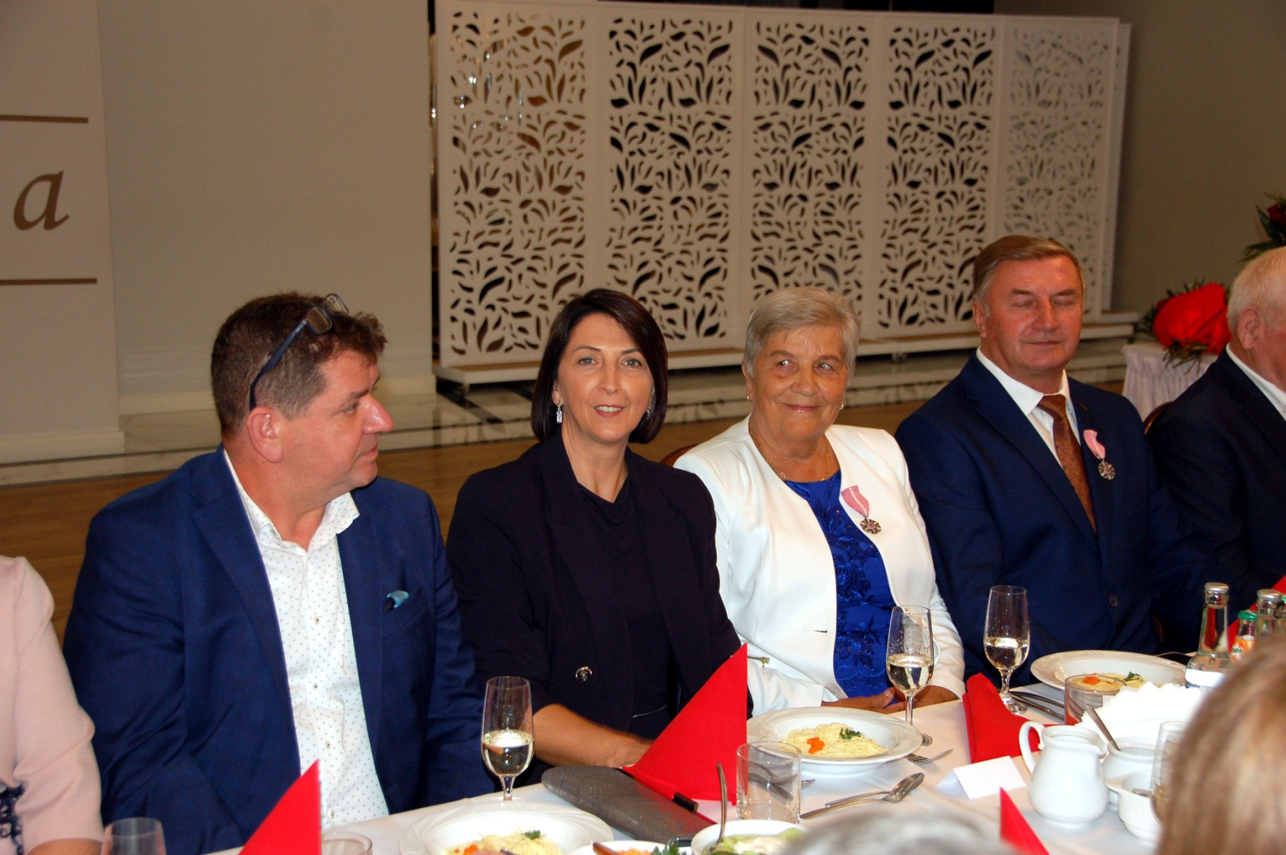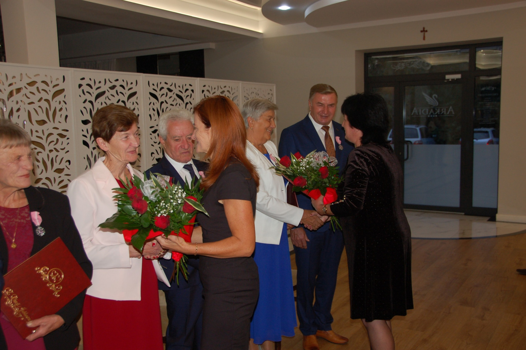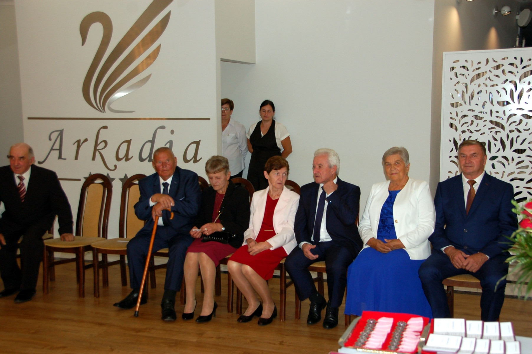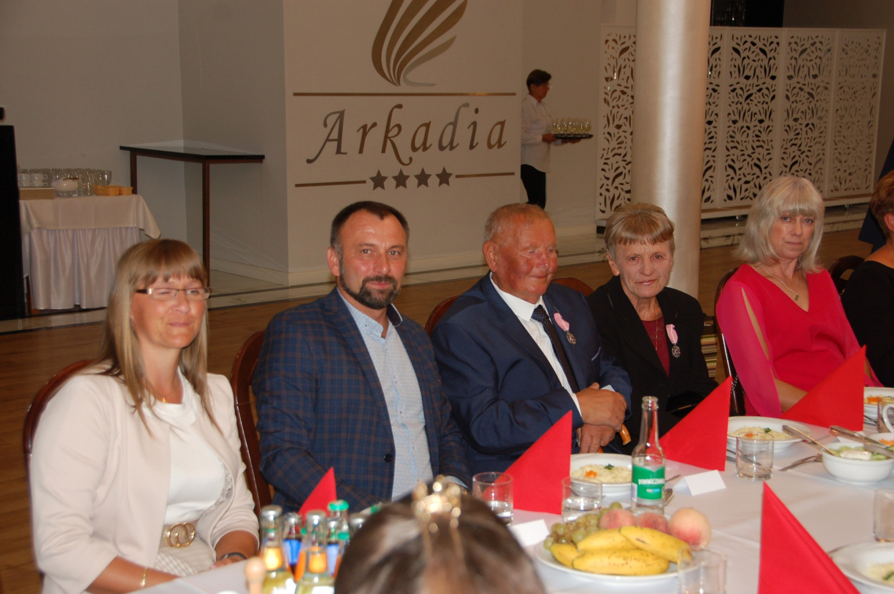 Przybywających do sali Jubilatów i gości już w progu witała główna organizatorka uroczystości Paulina Mech- Kierownik Urzędu Stanu Cywilnego w Trzcianie. Punktualnie o godzinie 18:00 rozpoczęła się uroczystość. Powitano i przedstawiono Jubilatów oraz gości samorządowych: Wójta - Cezarego Stawarz, byłą Sekretarz Gminy Trzciana- Wandę Surma oraz Przewodniczącą Rady Gminy-Renatę Paruch.