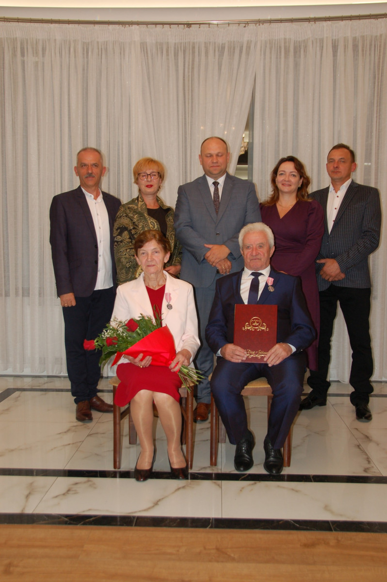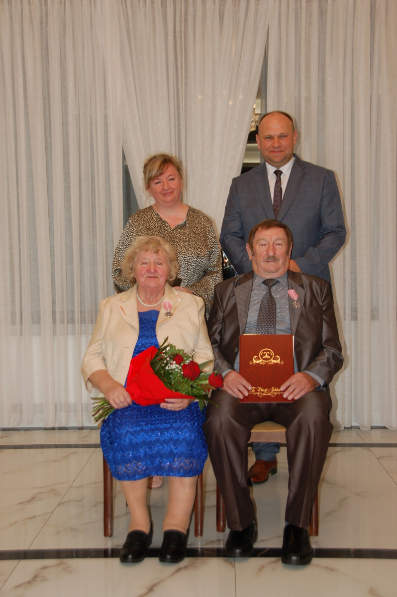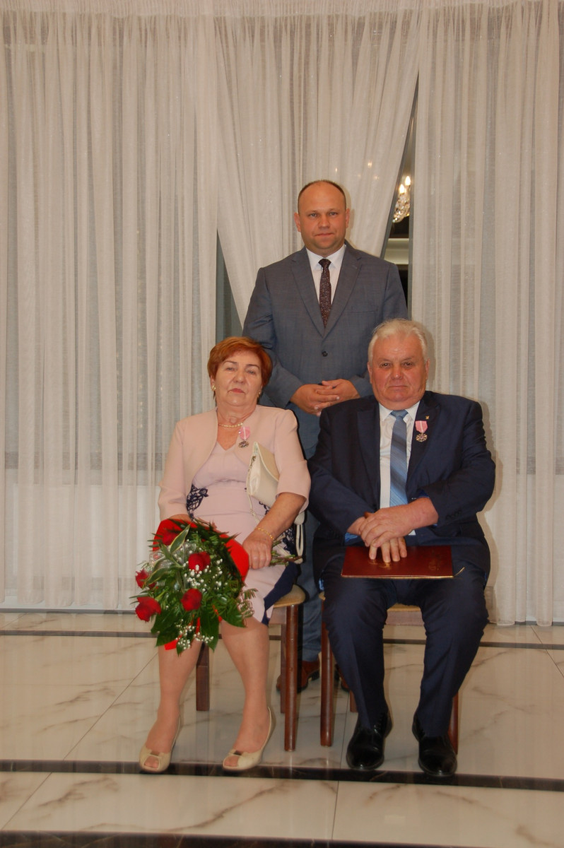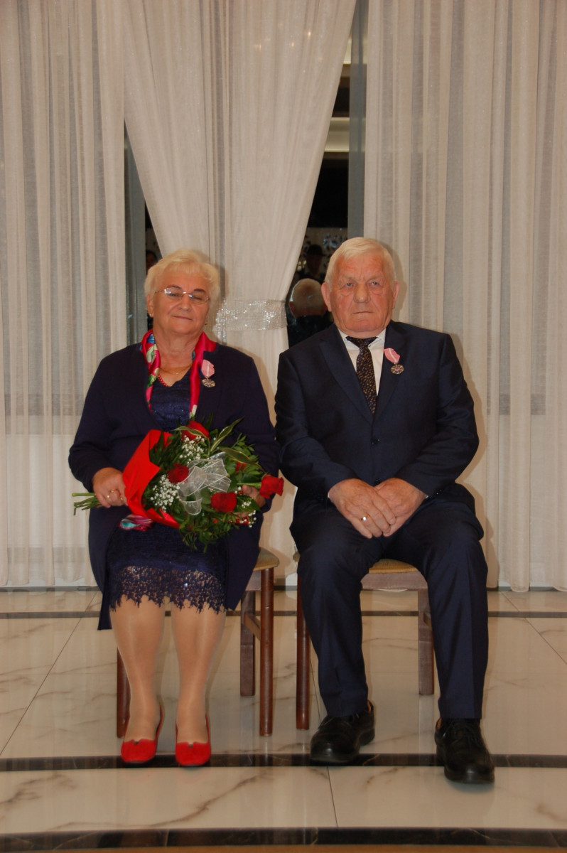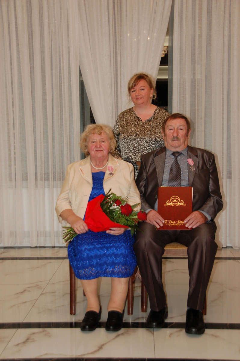 Prowadząca całą uroczystość poinformowała zgromadzonych, że Medal Za Długoletnie Pożycie Małżeńskie, który będzie wręczony Złotym Jubilatom, ustanowiony został ustawą z dnia 17 lutego 1960 r. Nadaje go Prezydent Rzeczypospolitej Polskiej. Jest nagrodą dla osób, które przeżyły w jednym, zgodnym związku małżeńskim 50 lat. Stanowi dowód uznania Państwa dla trwałości związku małżeńskiego i rodziny. W dowód szacunku i uznania dla trwałości małżeństwa i rodziny - Wójt Gminy Trzciana przygotował dla Państwa Złotych Jubilatów - Listy Okolicznościowe z gratulacjami i najlepszymi życzeniami.