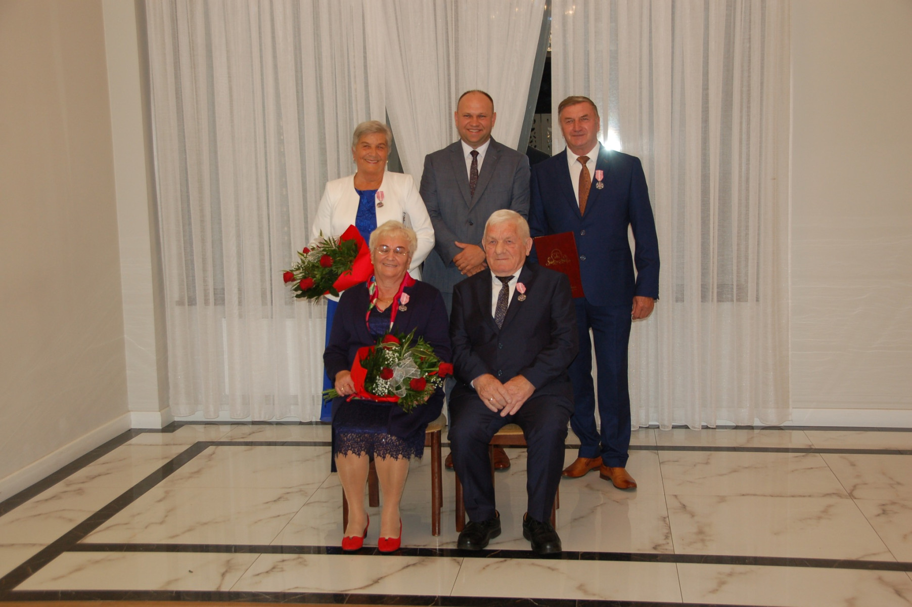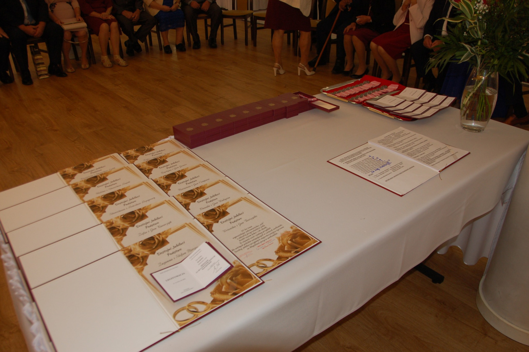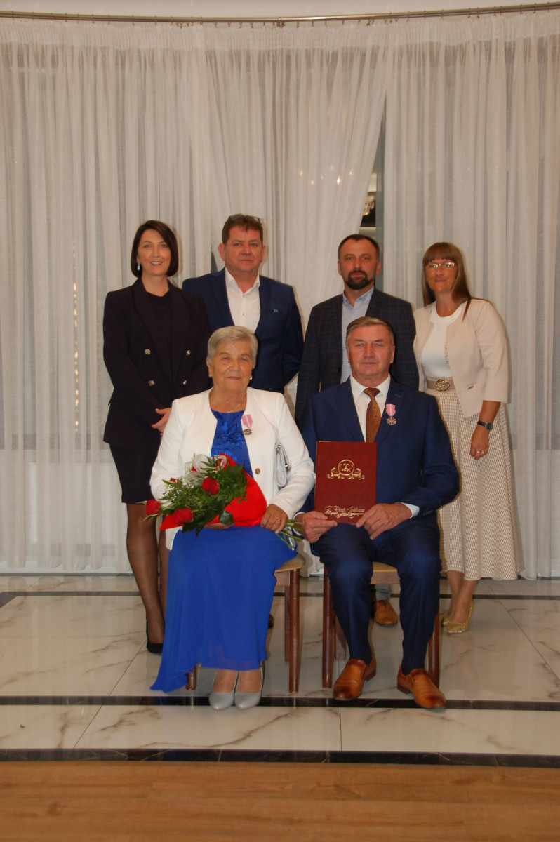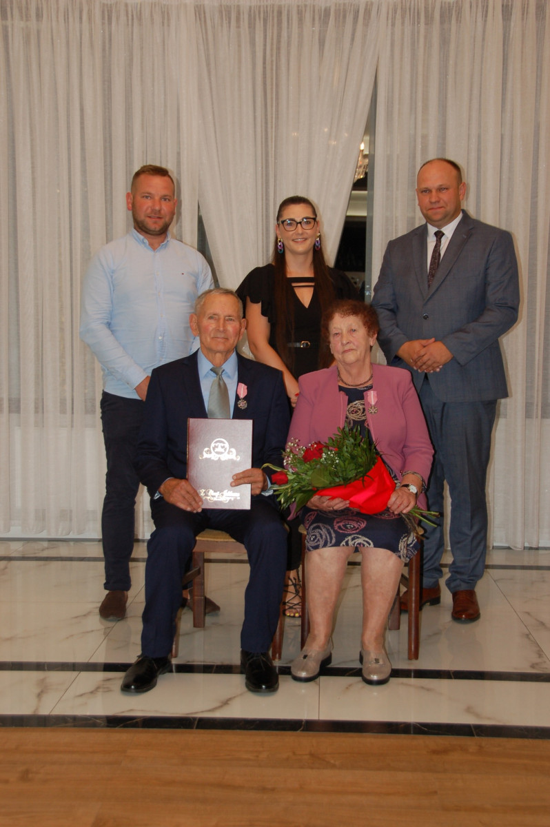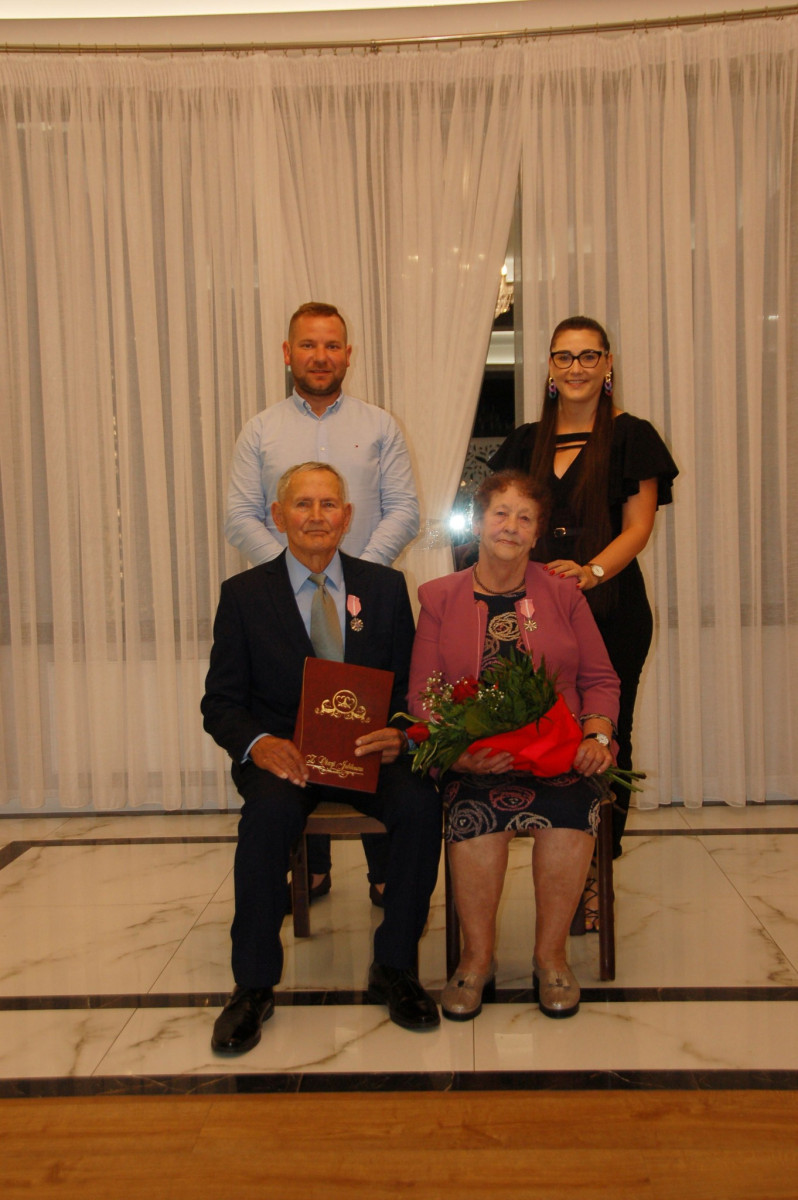 Prowadząca całą uroczystość poinformowała zgromadzonych, że Medal Za Długoletnie Pożycie Małżeńskie, który będzie wręczony Złotym Jubilatom, ustanowiony został ustawą z dnia 17 lutego 1960 r. Nadaje go Prezydent Rzeczypospolitej Polskiej. Jest nagrodą dla osób, które przeżyły w jednym, zgodnym związku małżeńskim 50 lat. Stanowi dowód uznania Państwa dla trwałości związku małżeńskiego i rodziny. W dowód szacunku i uznania dla trwałości małżeństwa i rodziny - Wójt Gminy Trzciana przygotował dla Państwa Złotych Jubilatów - Listy Okolicznościowe z gratulacjami i najlepszymi życzeniami.