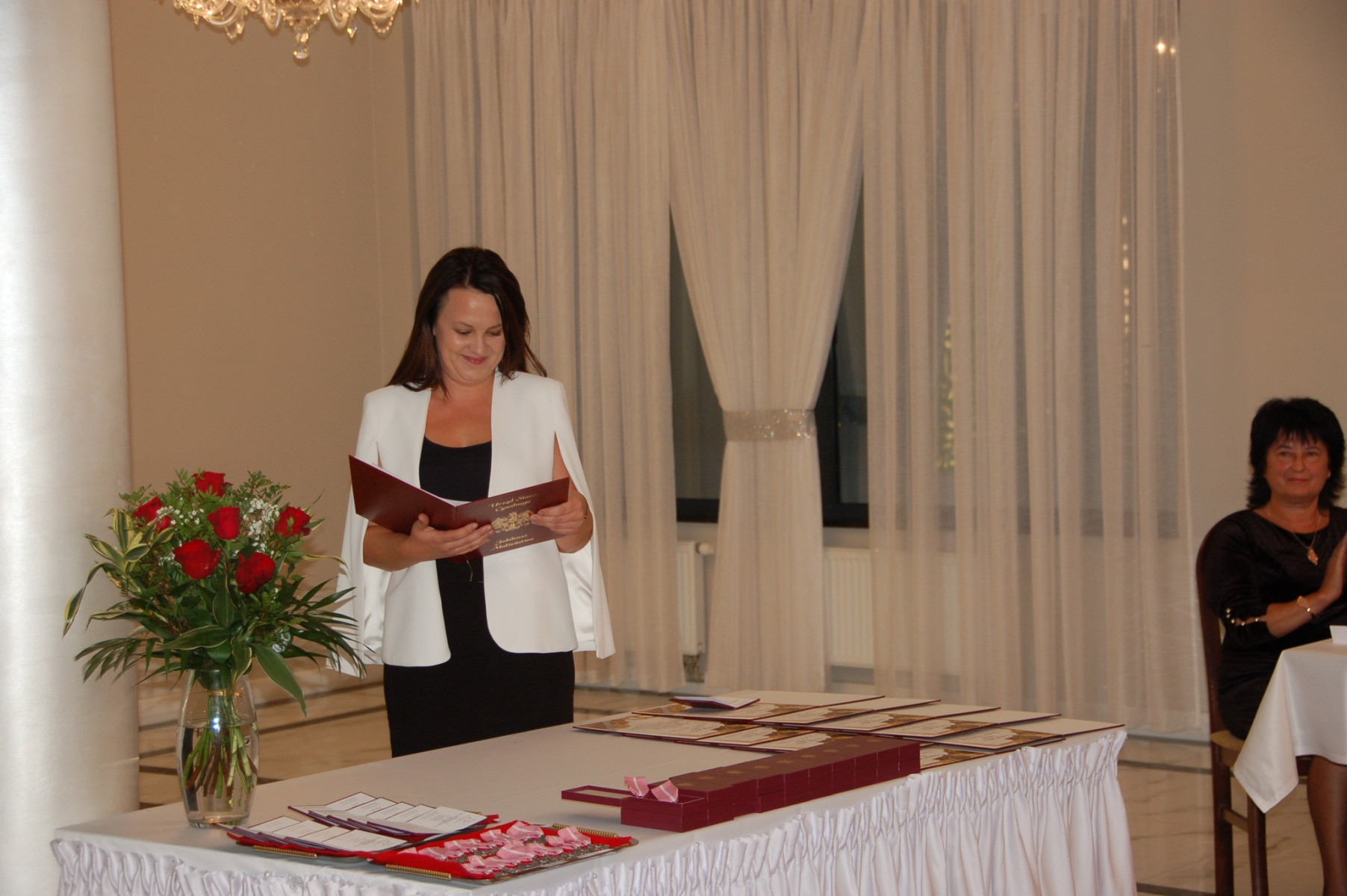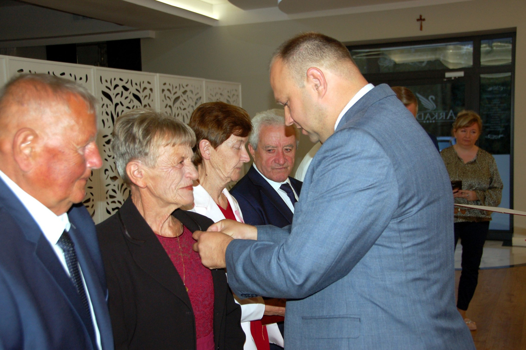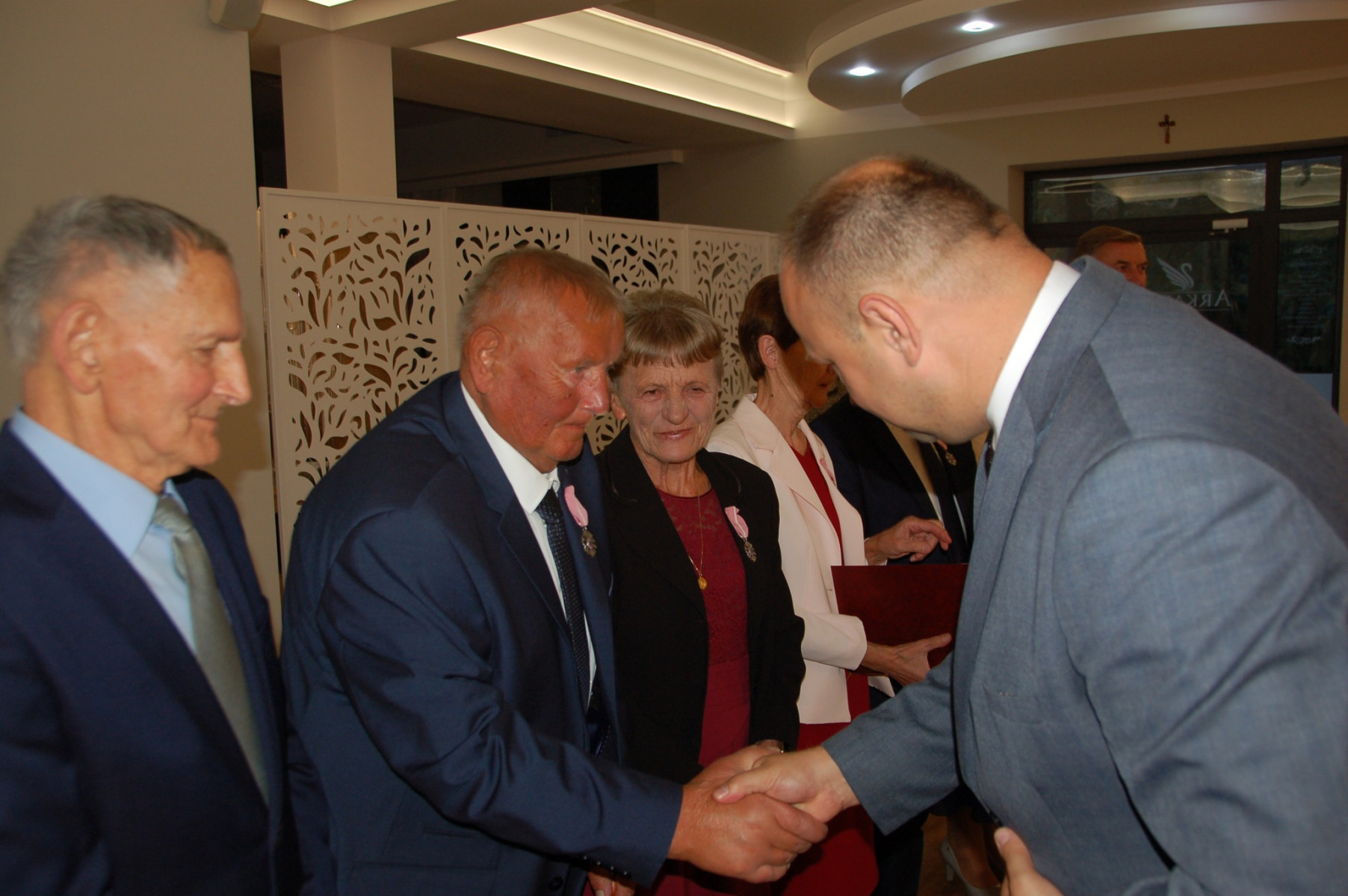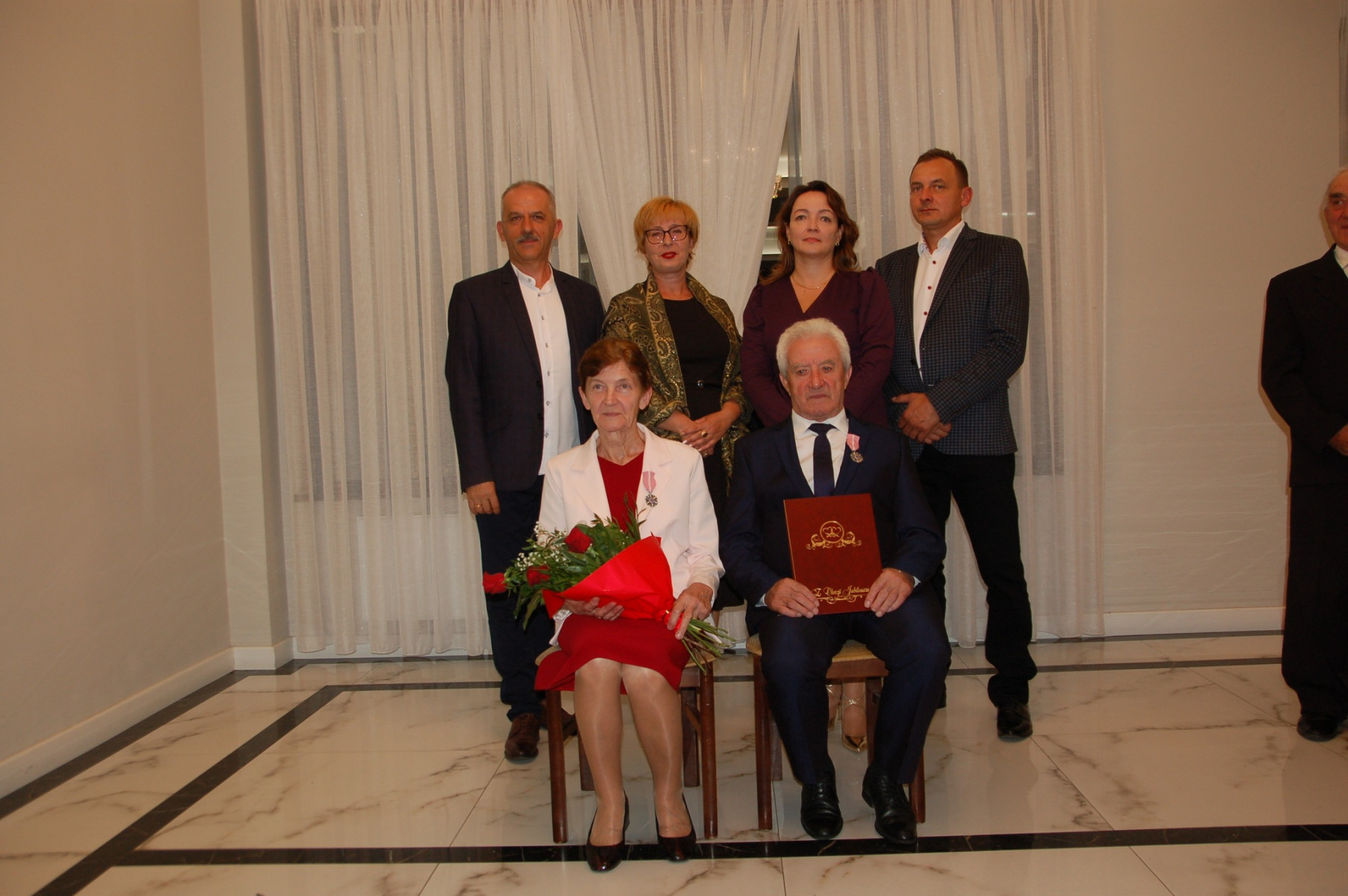 Prowadząca całą uroczystość poinformowała zgromadzonych, że Medal Za Długoletnie Pożycie Małżeńskie, który będzie wręczony Złotym Jubilatom, ustanowiony został ustawą z dnia 17 lutego 1960 r. Nadaje go Prezydent Rzeczypospolitej Polskiej. Jest nagrodą dla osób, które przeżyły w jednym, zgodnym związku małżeńskim 50 lat. Stanowi dowód uznania Państwa dla trwałości związku małżeńskiego i rodziny. W dowód szacunku i uznania dla trwałości małżeństwa i rodziny - Wójt Gminy Trzciana przygotował dla Państwa Złotych Jubilatów - Listy Okolicznościowe z gratulacjami i najlepszymi życzeniami.