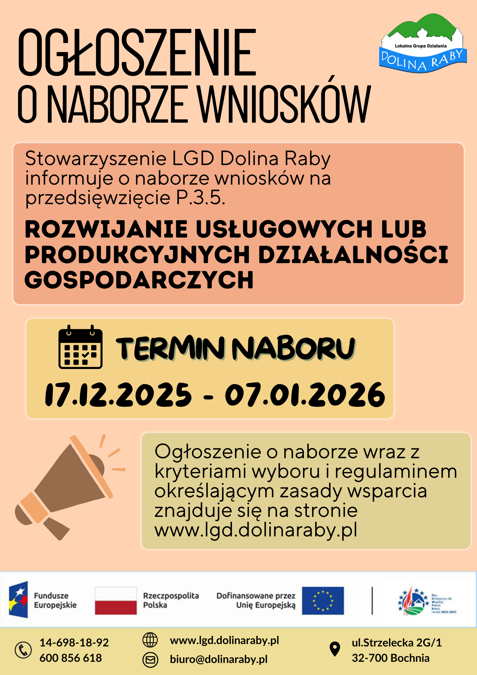 Stowarzyszenie Lokalna Grupa Działania "Dolina Raby" informuje o realizacji Lokalnej Strategii Rozwoju (LSR)