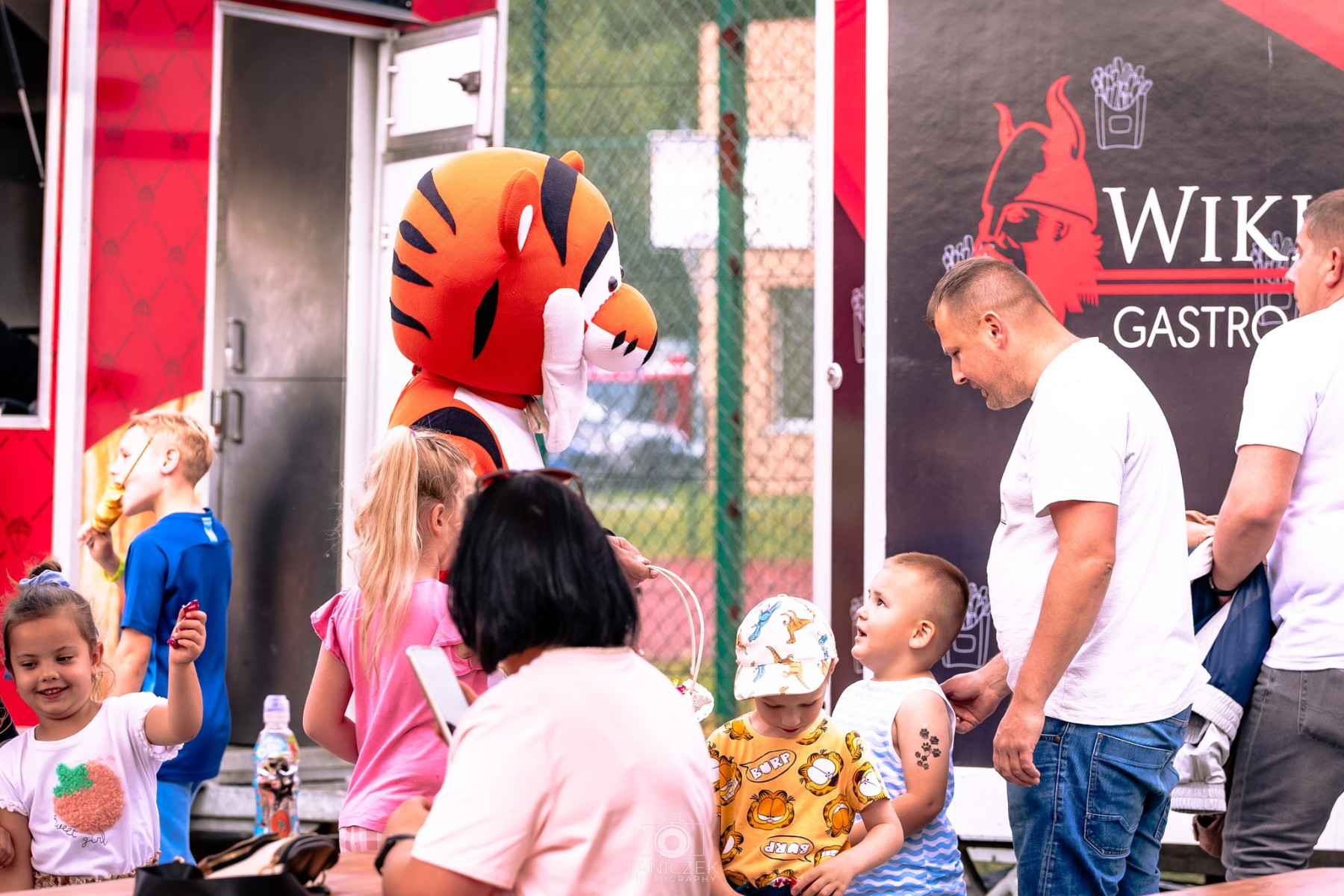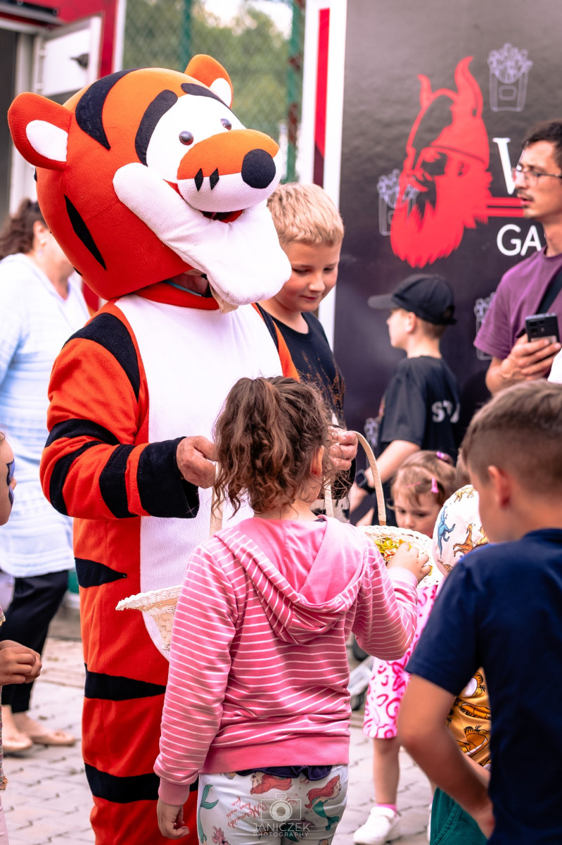 Wśród atrakcji nie zabrakło przejażdżek quadem - za co serdecznie dziękujemy OSP KSRG Leszczyna, a także darmowych dmuchańców, animatorów malujących dziecięce buźki i przechadzających się wśród dzieci Tygryska z lasu z Kamionnej 😉, który chętnie rozdawał słodycze i pozował do wspólnych zdjęć.