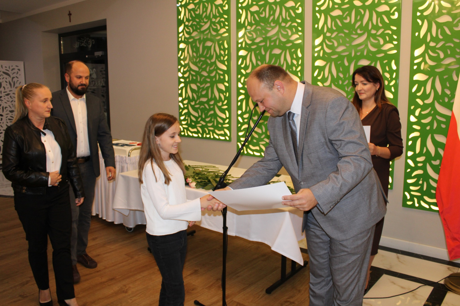 W dniu 7 października 2025 r. odbyła się uroczystość na której miałem zaszczyt wręczyć uczniom symboliczne czeki potwierdzające przyznanie ,,Stypendium Wójta Gminy Trzciana''.