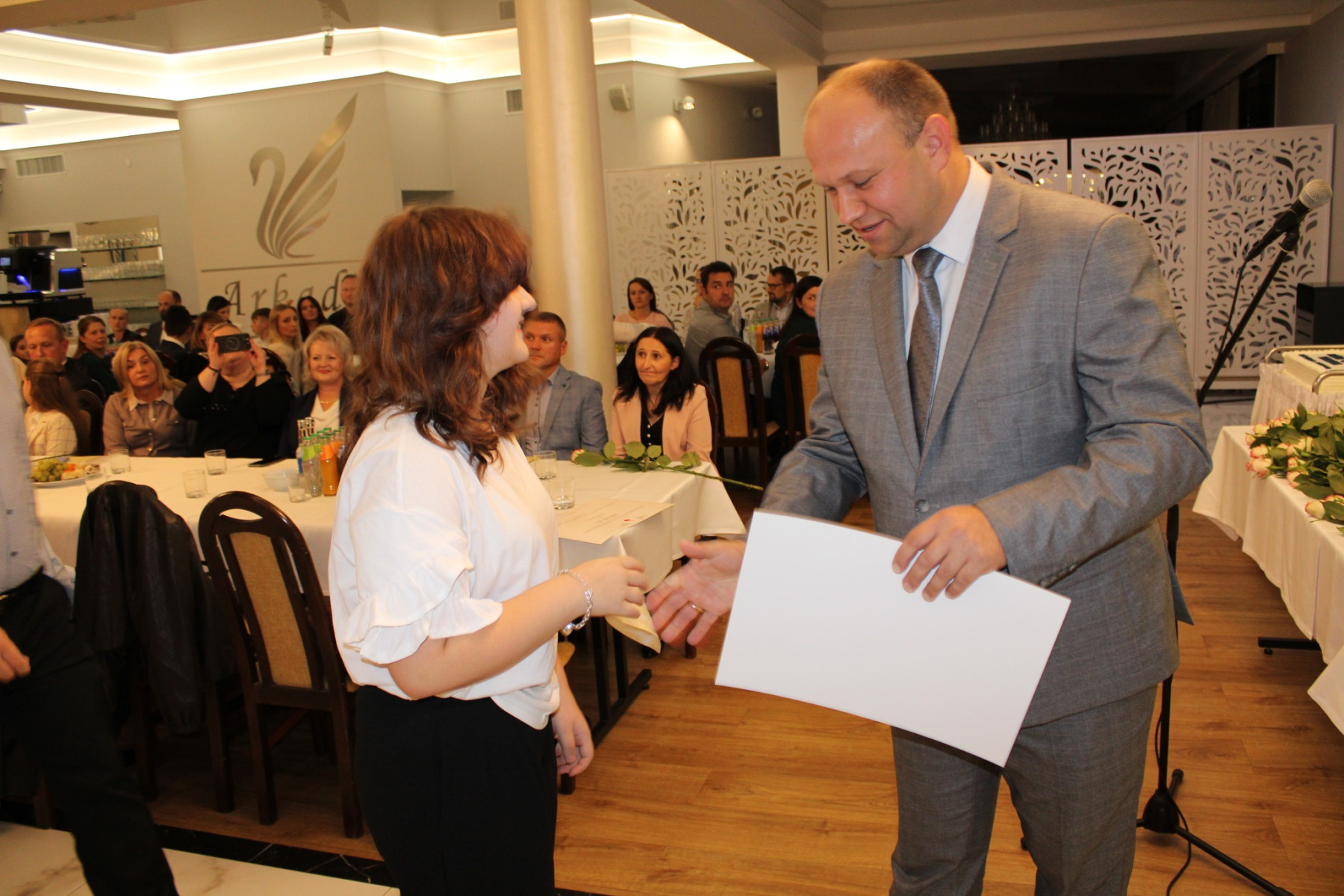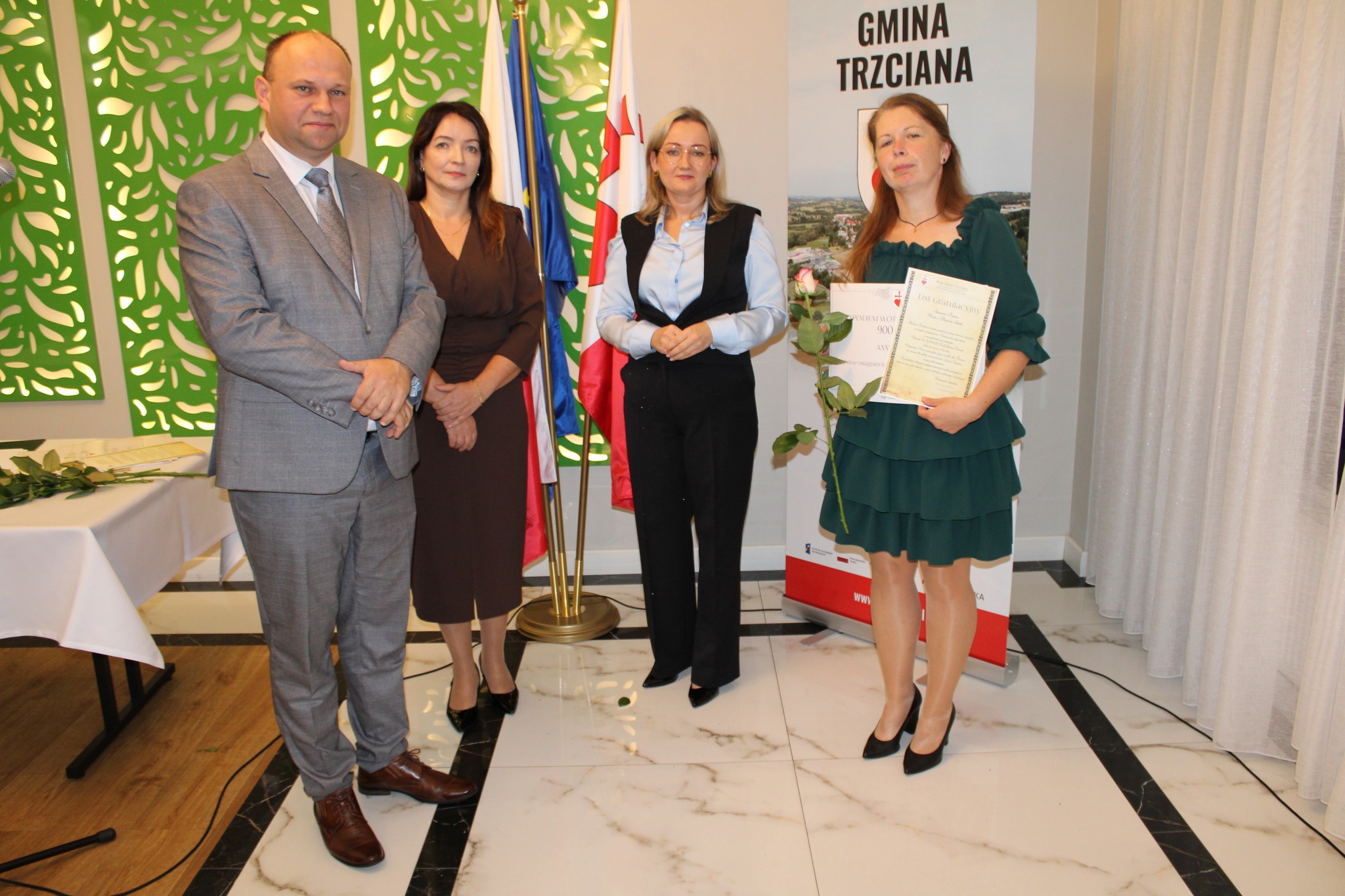 Wójt Gminy Trzciana razem z Kierownikiem GZOS w Trzcianie Panią Beatą Mordarską oraz Zastępcą Kierownika RISKiR Panią Karoliną Madej-Kaczmarczyk, na podstawie decyzji Komisji Stypendialnej wręczył 41 nagród Wójta Gminy Trzciana.