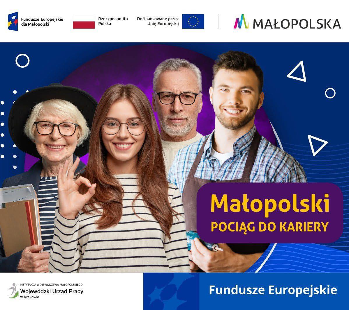 „Małopolski pociąg do kariery – sezon1” i „Pracownicy – najlepsza inwestycja dla firmy 2.0” to projekt realizowany przez Wojewódzki Urząd Pracy w Krakowie i współfinansowany przez Unię Europejską ze środków Europejskiego Funduszu Społecznego Plus.