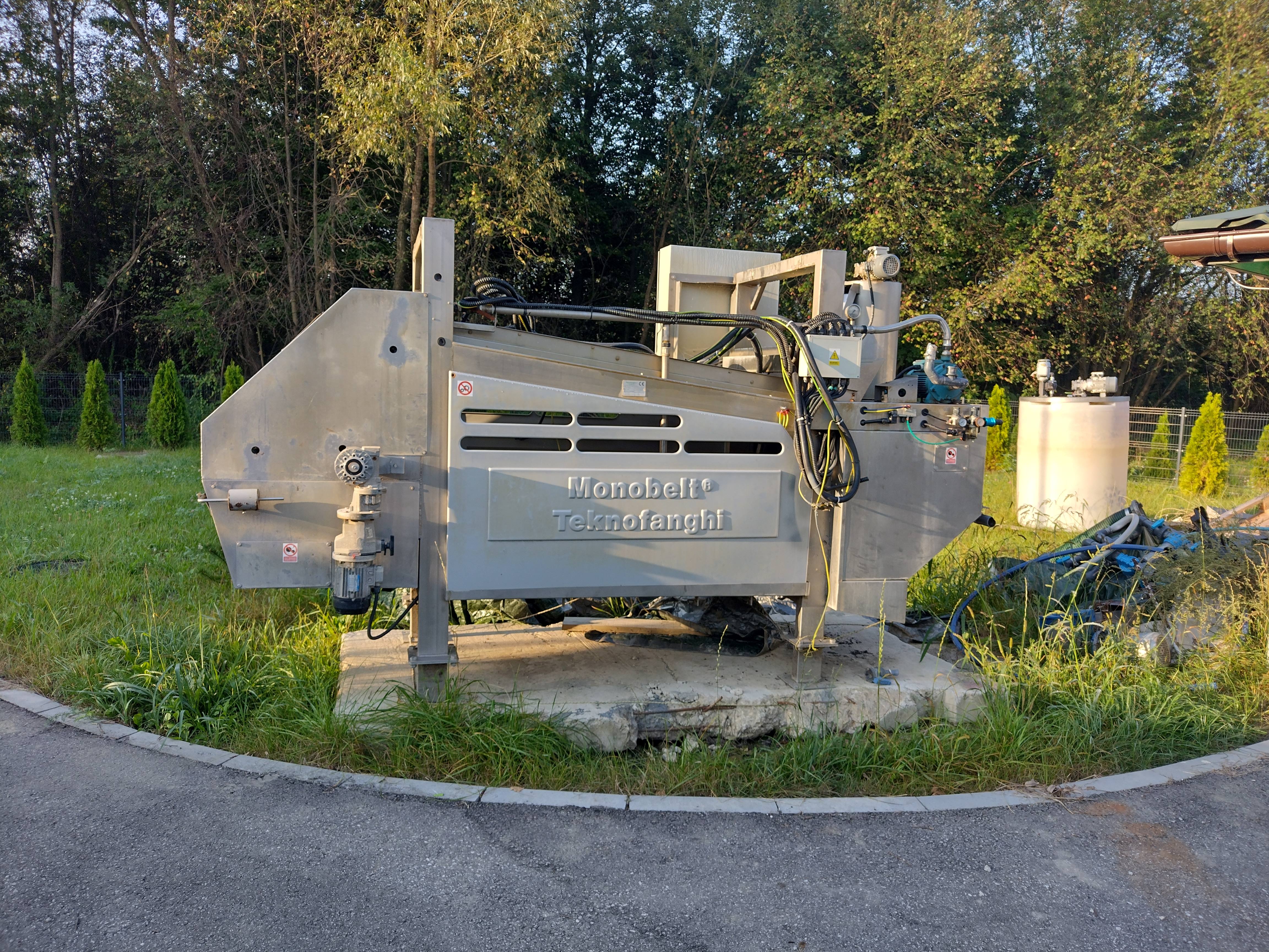 Komplet: prasa taśmowa wraz ze skrzynką sterowniczą, podajnikiem ślimakowym, stacją flokulantu wraz z pompą, podajnikami i wspornikami.