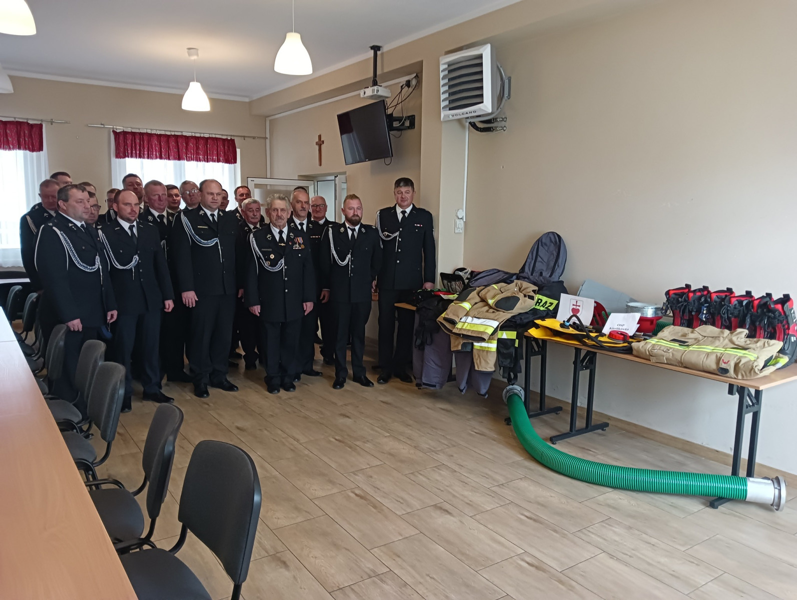 wąż ssawny - 2 szt. , smok ssawny, tłumice - 2 szt, siodełko wężowe, 2 szt. hydronetek, ubranie specjalne i 3 pary butów specjalnych. Łączna wartość zakupionego towaru to 9482zł , w tym dotacja Gminy Trzciana w wysokości 4741zł, oraz dotacja Komendanta Głównego PSP w kwocie 4741zł.