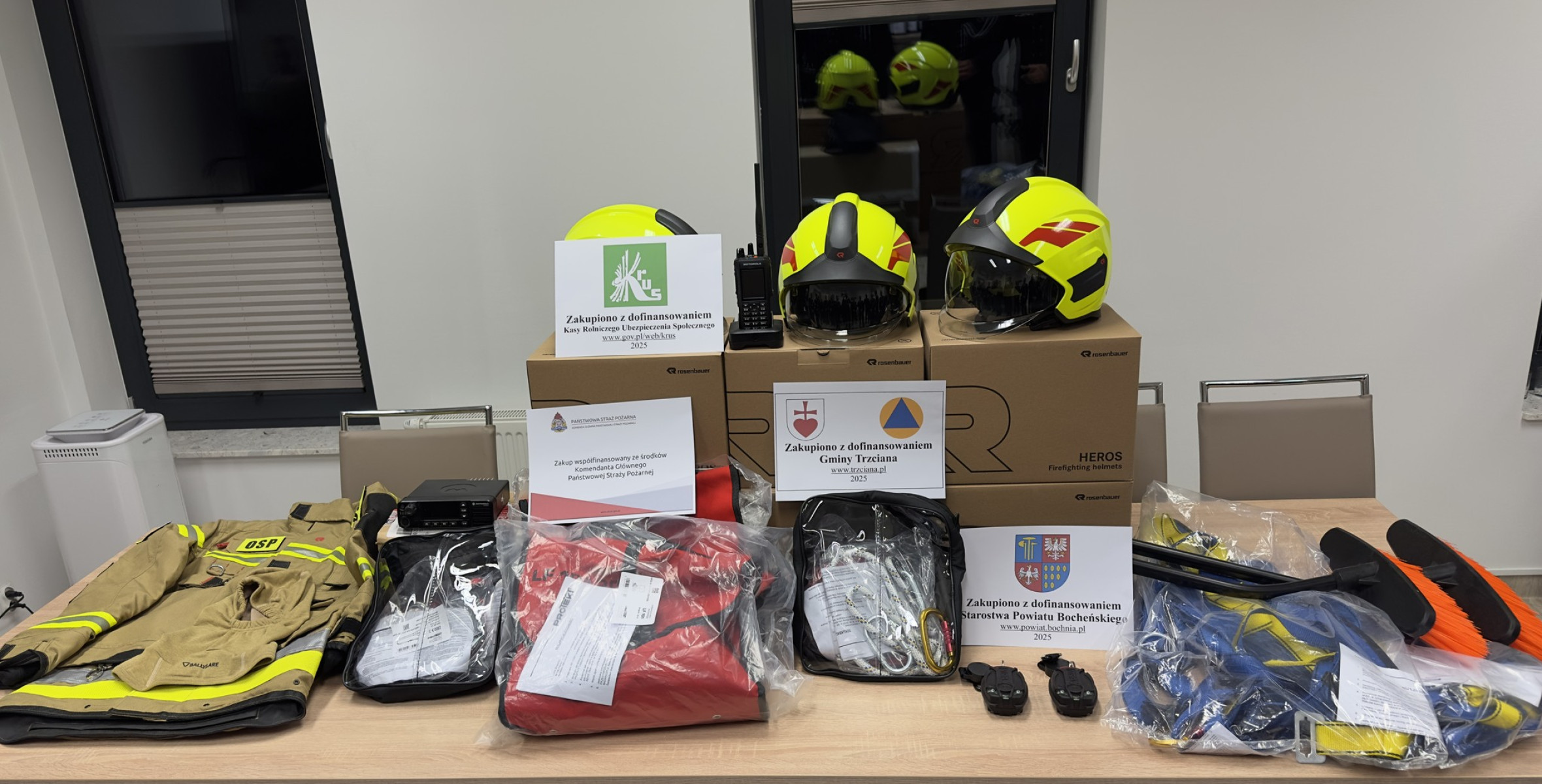 Zakupiono m.in. przewody hydrauliczne do zestawu Lucas, radiotelefon z osprzętem, hełmy, linki ratownicze, buty specjalne, zestawy asekuracyjne oraz sygnalizatory bezruchu.