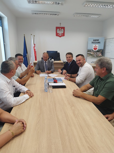Przetarg na realizację inwestycji wygrała Firma Handlowo-Usługowa NOWAK Tomasz Nowak z Łąkty Górnej. Przy podpisaniu umowy z Wykonawcą obecni byli: