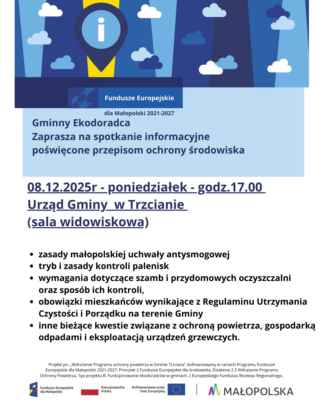 Serdecznie zapraszamy na spotkanie informacyjne poświęcone najważniejszym przepisom dot. ochrony środowiska oraz sposobom ich egzekwowania.