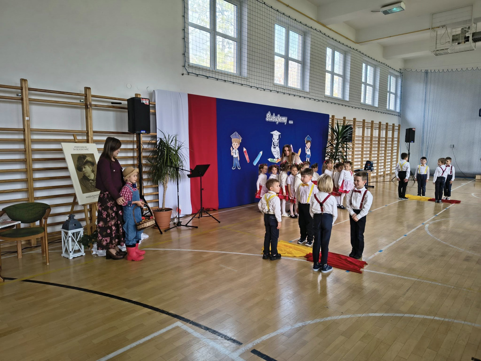 W części artystycznej wystąpiły dzieci z oddziału przedszkolnego oraz uczniowie starszych klas. Widzowie mogli podziwiać recytacje wierszy Marii Konopnickiej, śpiew piosenek oraz inscenizację, podczas której na scenie pojawił się duch samej patronki szkoły.