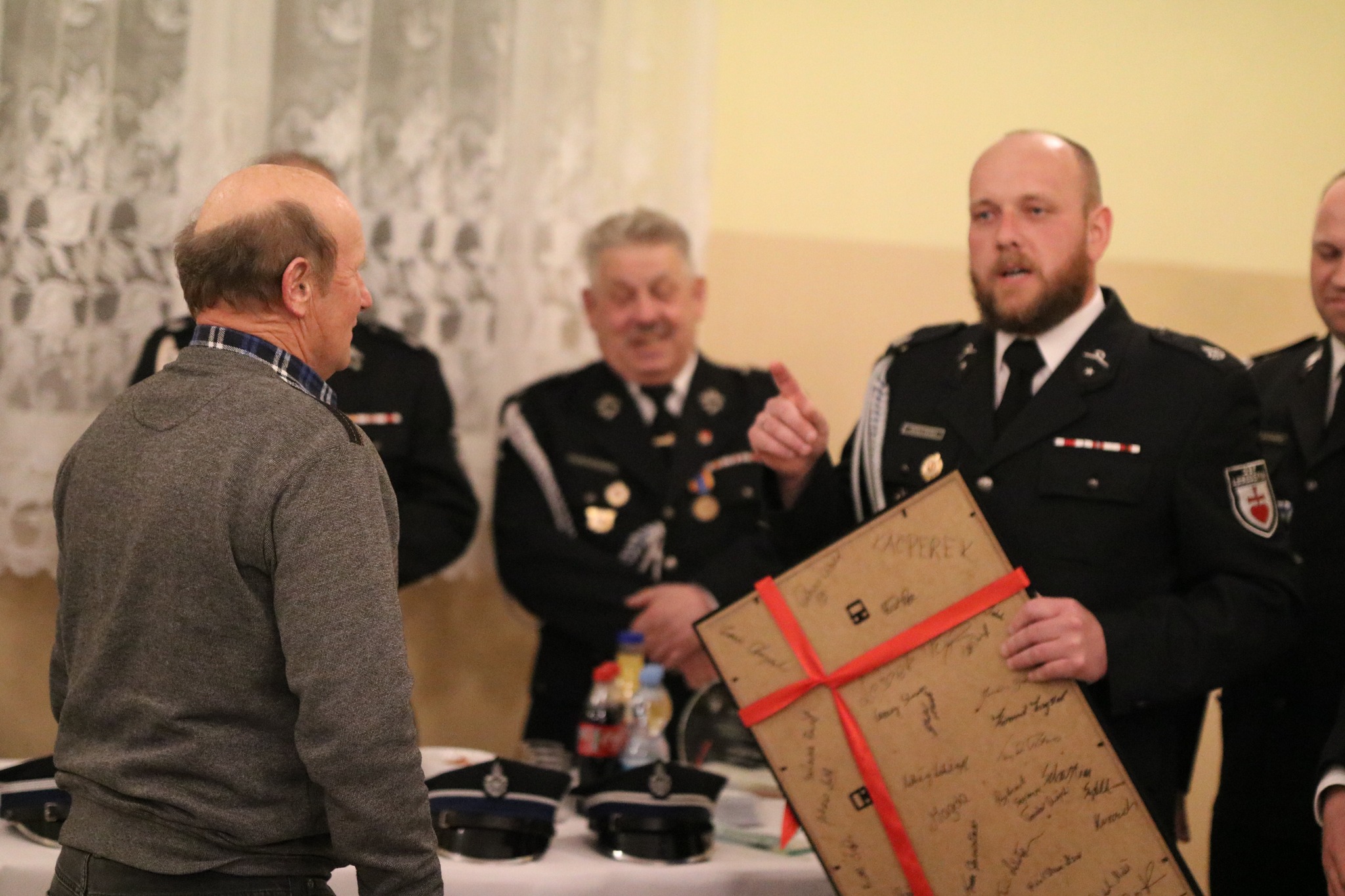Następnie druhowie z jednostki podziękowali druhowi Stanisławowi Tracz, który z racji wieku emerytalnego nie będzie mógł już wyjeżdżać z nami do akcji ratunkowych. Druh Stanisław to żywa legenda jednostki.